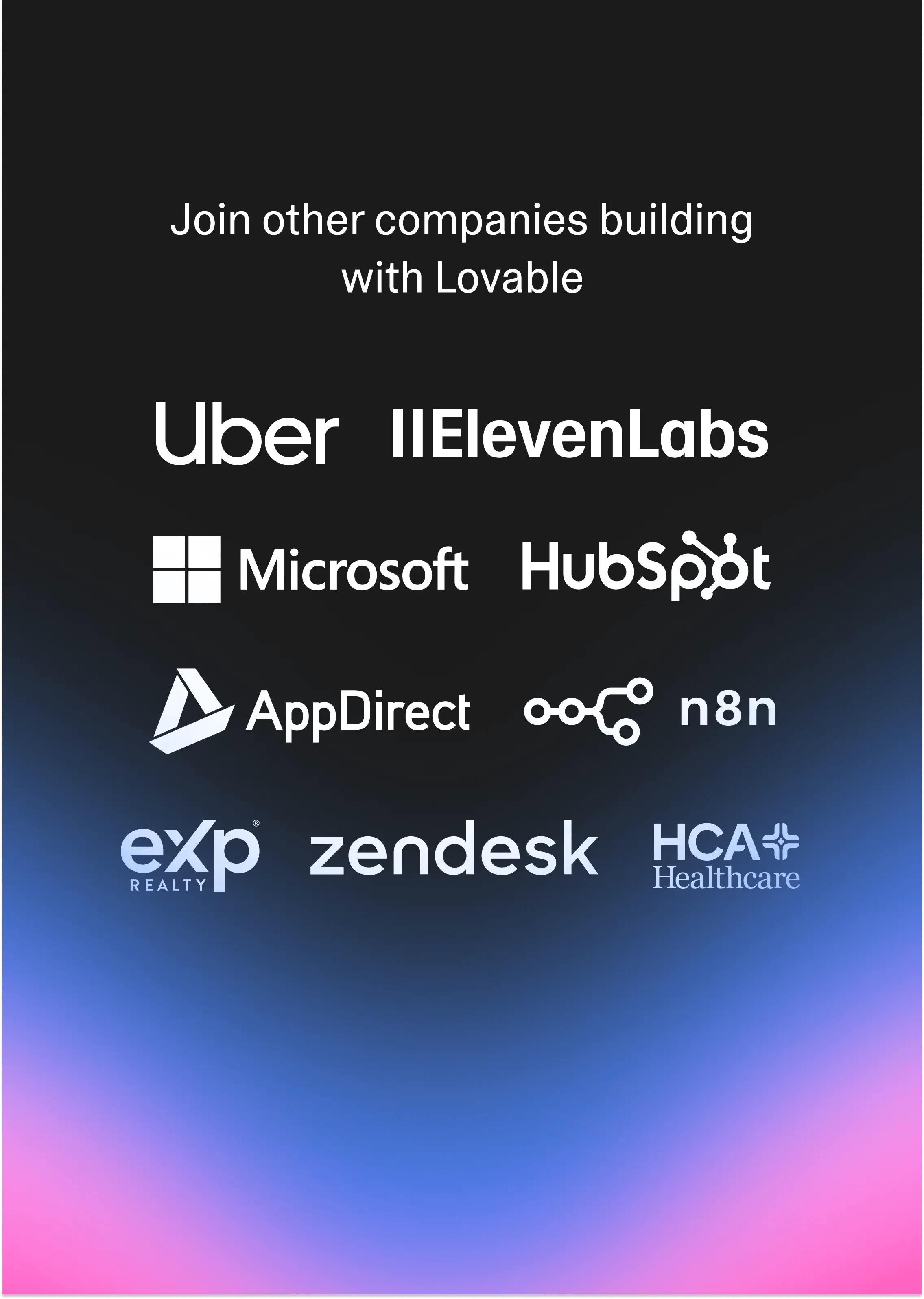 We'll use the information you share to reach out about lovable.dev products and services. You can unsubscribe at any time. For details on how we protect your data, check out our Privacy policy.